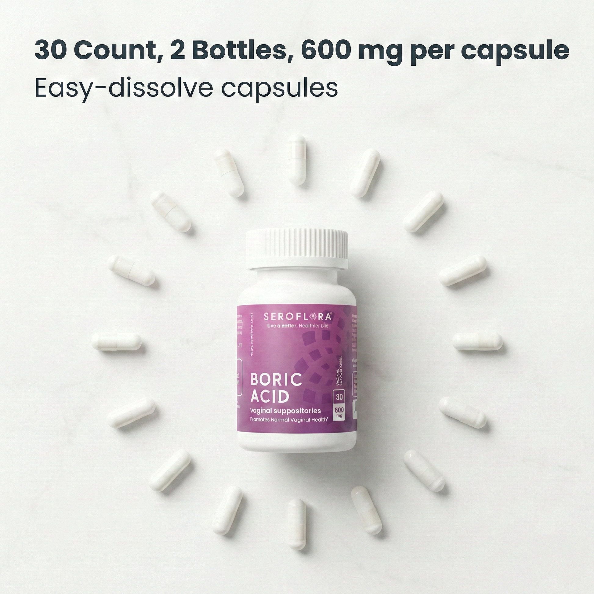 600MG pharmaceutical grade boric acid (per suppository).